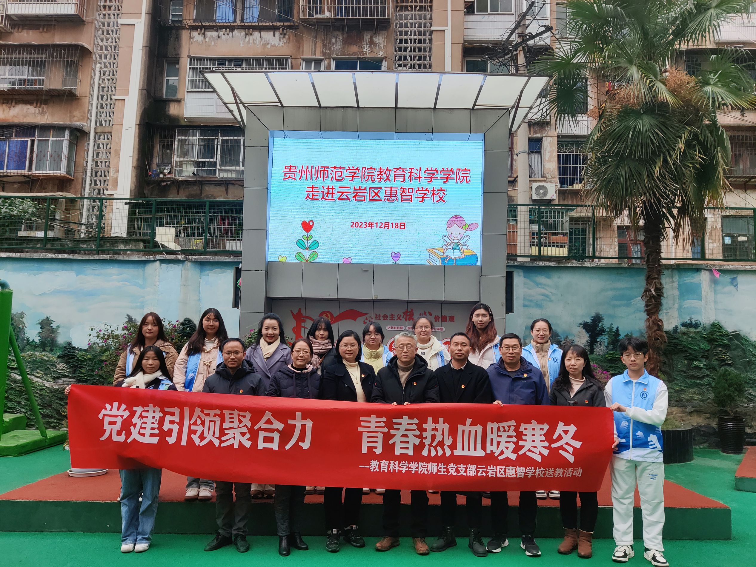 党委书记肖湘萍、党委纪检委员、副院长黎平辉的带领下,教师党支部书记张鸿翼、学生党支部书记张源、特殊教育系主任雷经国以及部分师生党员与云岩区惠智学校党支部党员联合开展主题党日活动。