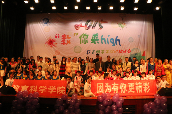 “教你来high” ---2015级迎新晚会在逸夫楼演播厅隆重举行。校党委书记陈扬、副校长郭文、校团委书记张婷以及各学院学生会代表出席晚会,动漫花园