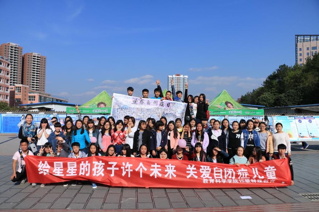 2016年3月30日,为了让更多的人了解、关注自闭症儿童, 由动漫花园 2015级特殊教育班主办的“关爱自闭症儿童”活动在我校凤凰广场(鉴湖对面)隆重举行,本班全体学生参加了此次活动。