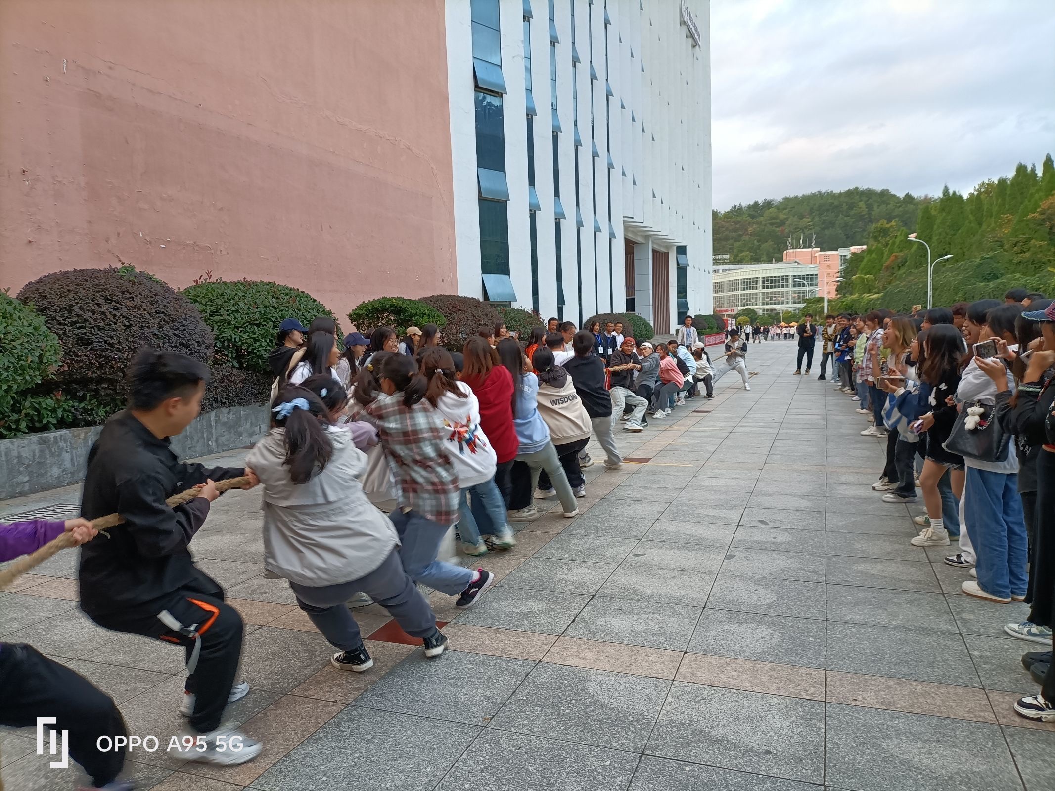 在凤凰广场举行“青春杯”拔河比赛,历时两天,全院13支队伍,三个赛程。