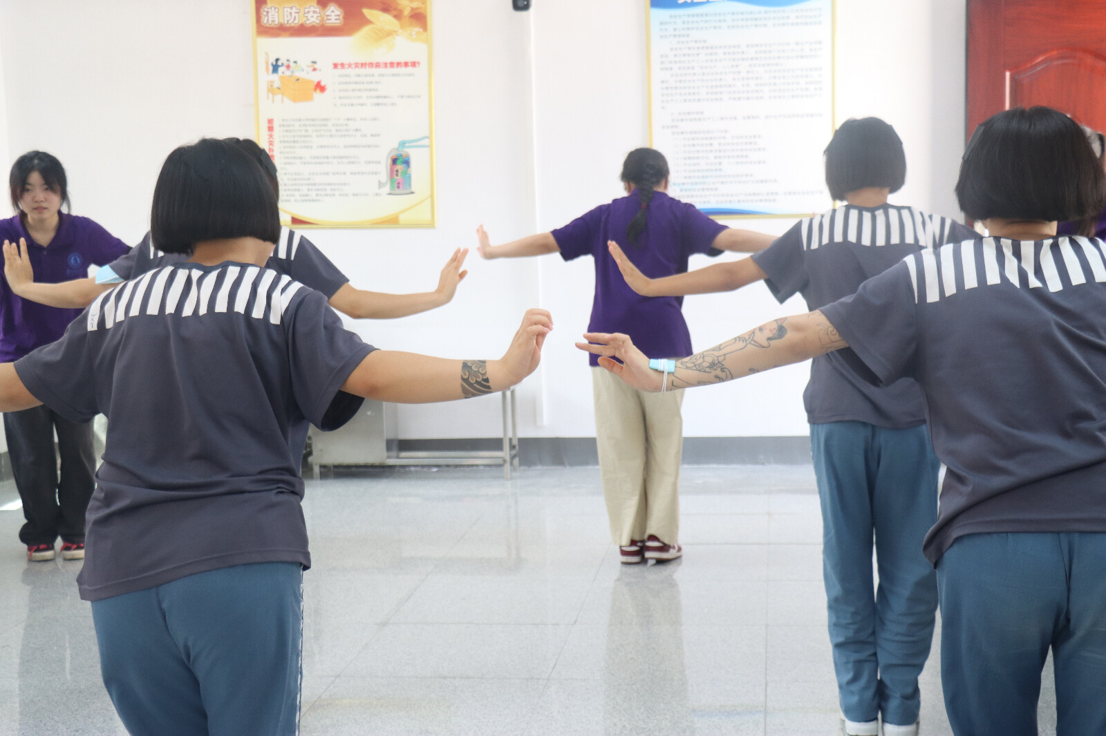 本次教学活动特别选取《上春山》为教学歌曲,由冉娉,王韵捷在女生监舍进行教学。本次教学旨在通过舞蹈音乐教学搭建罪犯阳光热爱生活的心灵桥梁,促进他们的心理健康,通过掌握新的技能,在表演中获得肯定,有助于他们重建自信和自尊。在学习中,罪犯们很快掌握韵律和节奏,用优美的舞蹈动作诠释春日美景。冉娉表示,通过这样的舞蹈,让罪犯们在学习和排练过程中释放内心的压力和负面情绪,更好地燃起对生活的热爱,引导罪犯们进行自我改造和提升。