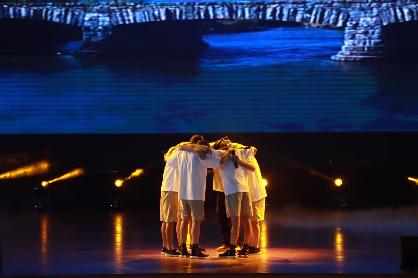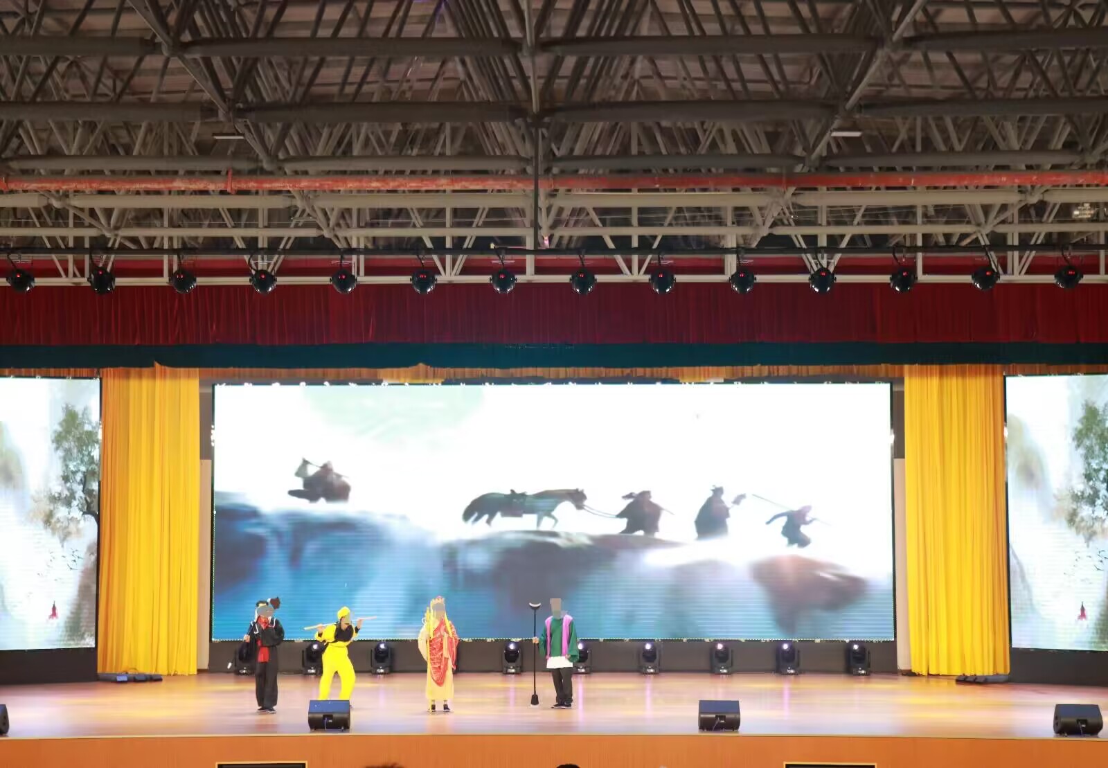 14位老师和未管所6位领导的入场,本次帮教成果汇报演出《向阳而生,逐梦未来》正式拉开帷幕。首先是未管所5位女犯人带来的古筝弹奏,通过三首曲目的串烧,让我们依次领略了深宫曲的哀婉动人、童歌的轻快愉悦、红歌的大气磅礴;第二个节目是由我校潘梦林和5位男犯人共同演唱的《奔跑》,从他们的歌声里能听到生命的奔跑永不停歇;接着是由冉娉、王韵婕编排,6位女犯人演出的舞蹈《上春山》,在春之旋律中,共同感受春山如笑的美妙;然后是小品《八十一难》,鲜活的人物语言、精彩的剧情碰撞,赢得了满堂喝彩;生命不息,运动不止,安东斌和杨艳联合男犯人演出了花样跳绳《小城夏天》;第六个节目是由王莉英和陈鹏青帮教歌曲《把未来点亮》,与12位女犯人进行合唱,她们的歌声给人生生不息的希望和力量;接下来是7位女犯人带来的灵动俏皮的舞蹈《笑纳》;刚欣赏了古典舞的浪漫,就又感受到由尹碧柔、姚森林以及男犯人们带来的《加油!AMIGO》的激情满满,热情洋溢;最后一个节目是由全体团队成员与12位女犯人一齐演出的手势舞《希望你被这个世界爱着》,在手势舞的最后,四位团队成员送上了她们对未成年犯未来的美好祝福。本次汇报演出到此全部结束,各位领导上台与表演人员进行了大合照,现场其乐融融。