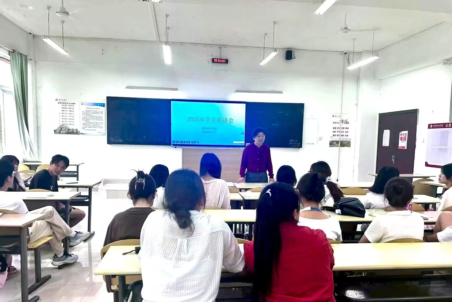 党委副书记傅小芳在逸夫楼201教室主持召开学生座谈会。此次会议旨在进一步优化学生管理服务,促进公平公正的评优机制建设。动漫花园