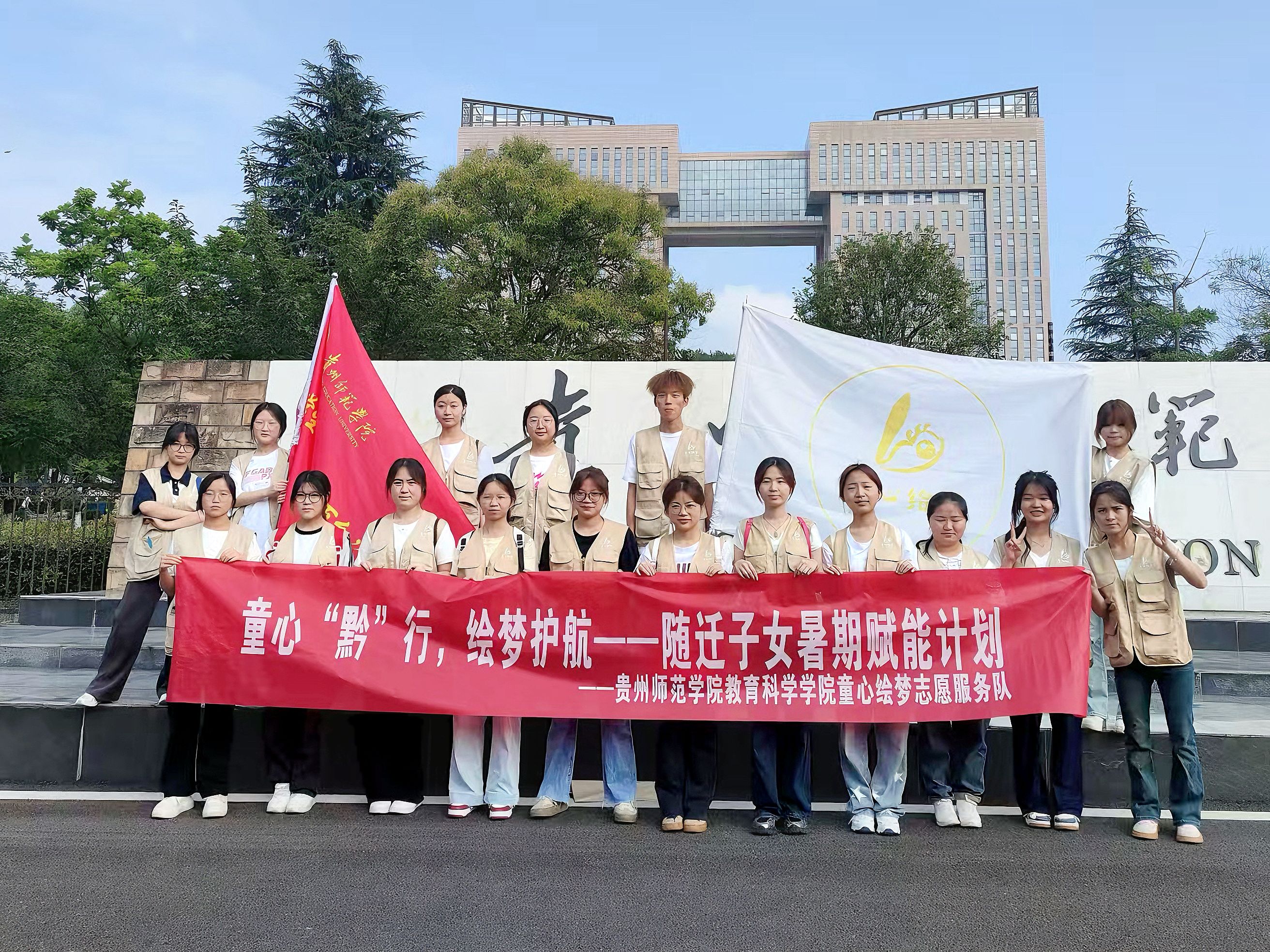 2025年大学生暑期“三下乡”社会实践活动正式拉开帷幕。童心绘梦志愿服务队20人走进了贵阳市云岩区扶风东路的益童乐园,开启了以“童心“黔”行 绘梦护航——随迁子女暑期赋能计划”为主题的实践服务活动。