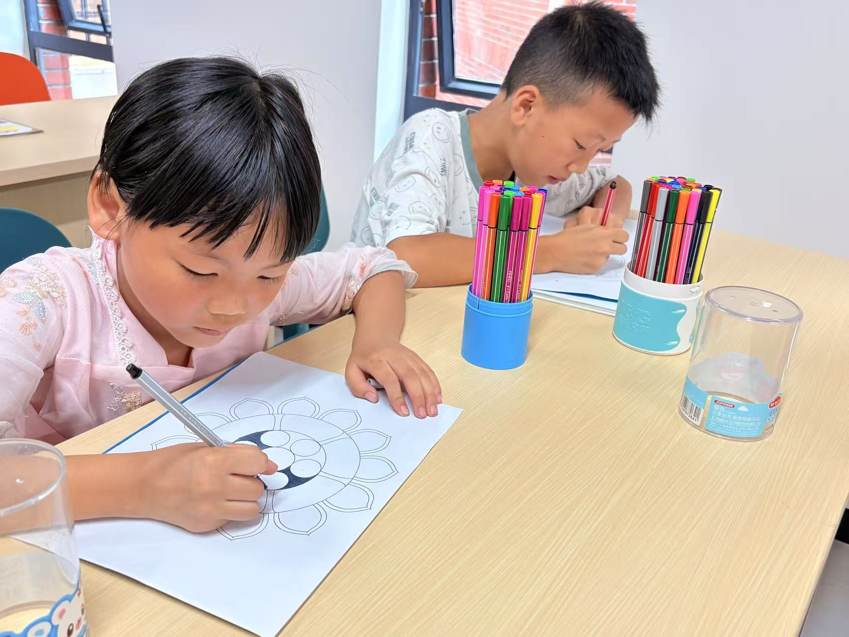 童心绘梦志愿服务队于益童乐园开展艺术疗愈专项活动,面向随迁子女群体组织了曼陀罗绘画与自由创作课堂。本次活动旨在依托绘画艺术媒介,为随迁子女构建情感表达渠道,助力其通过色彩运用释放内心世界,在创意实践中建立自信、体验愉悦。