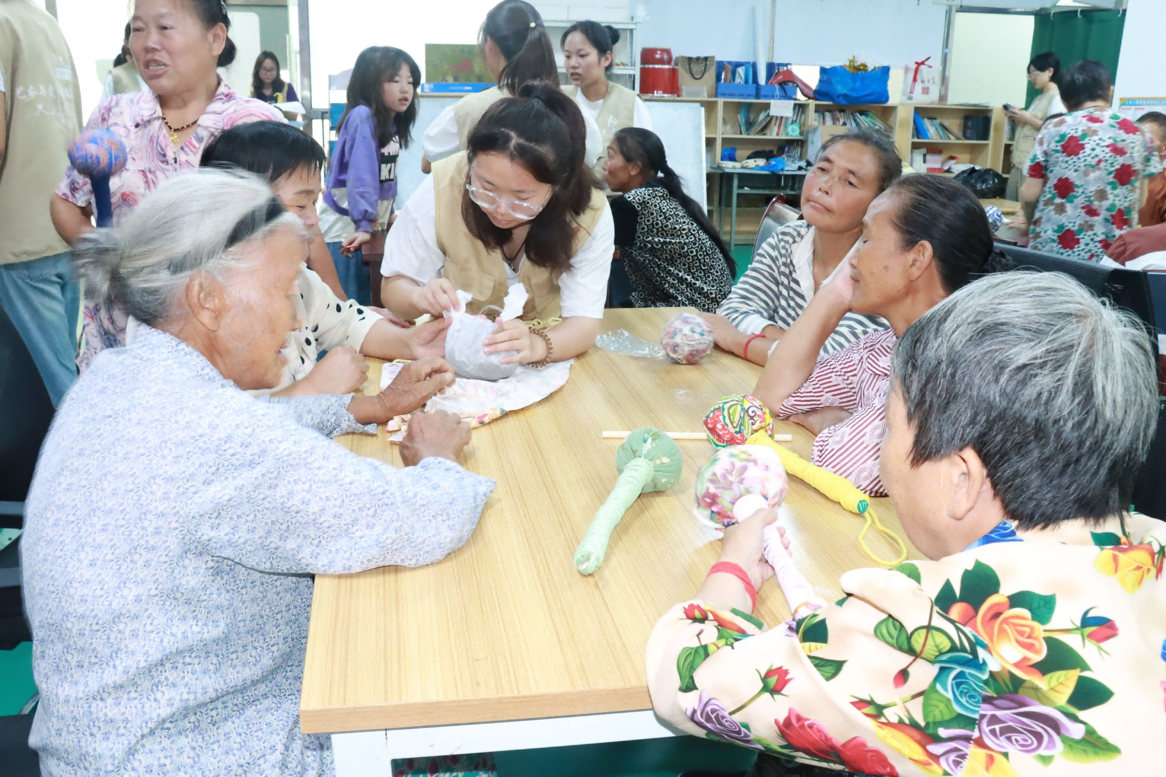 童心绘梦志愿服务队志愿者走进云锦尚城社区,与社区老年人、残疾人齐聚一堂,开展艾草锤手工制作活动,为社区增添温馨活力。
