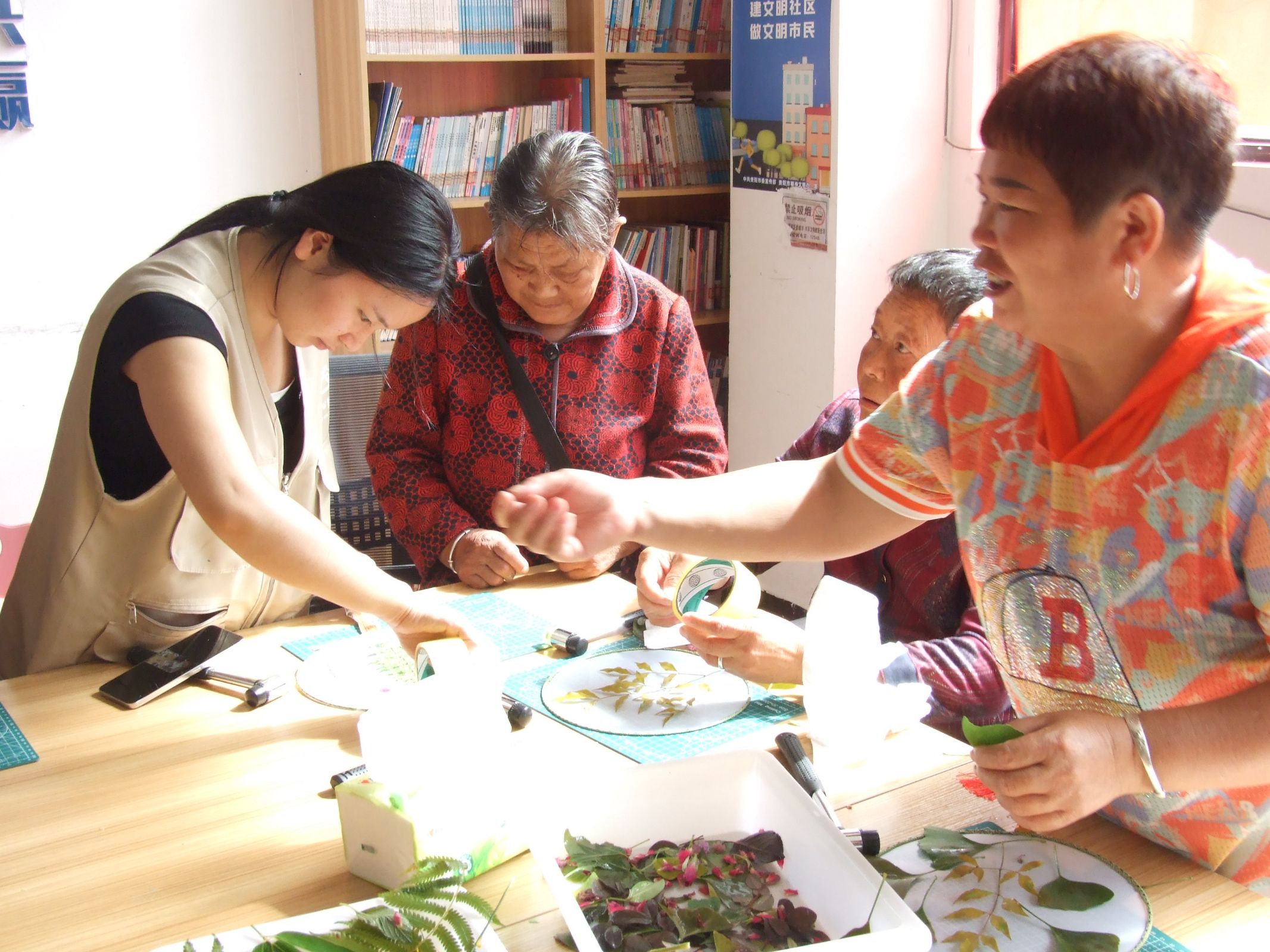 此次植物拓印活动不仅让他们体验了手工创作的乐趣,更通过与自然元素的互动,唤起了他们对生活的热爱。“暖居银龄 有爱无碍”系列活动关注老年人和残障人的需求,通过更多元、更贴心的服务,为他们的生活增添色彩,让他们感受到社会的关怀与温暖。