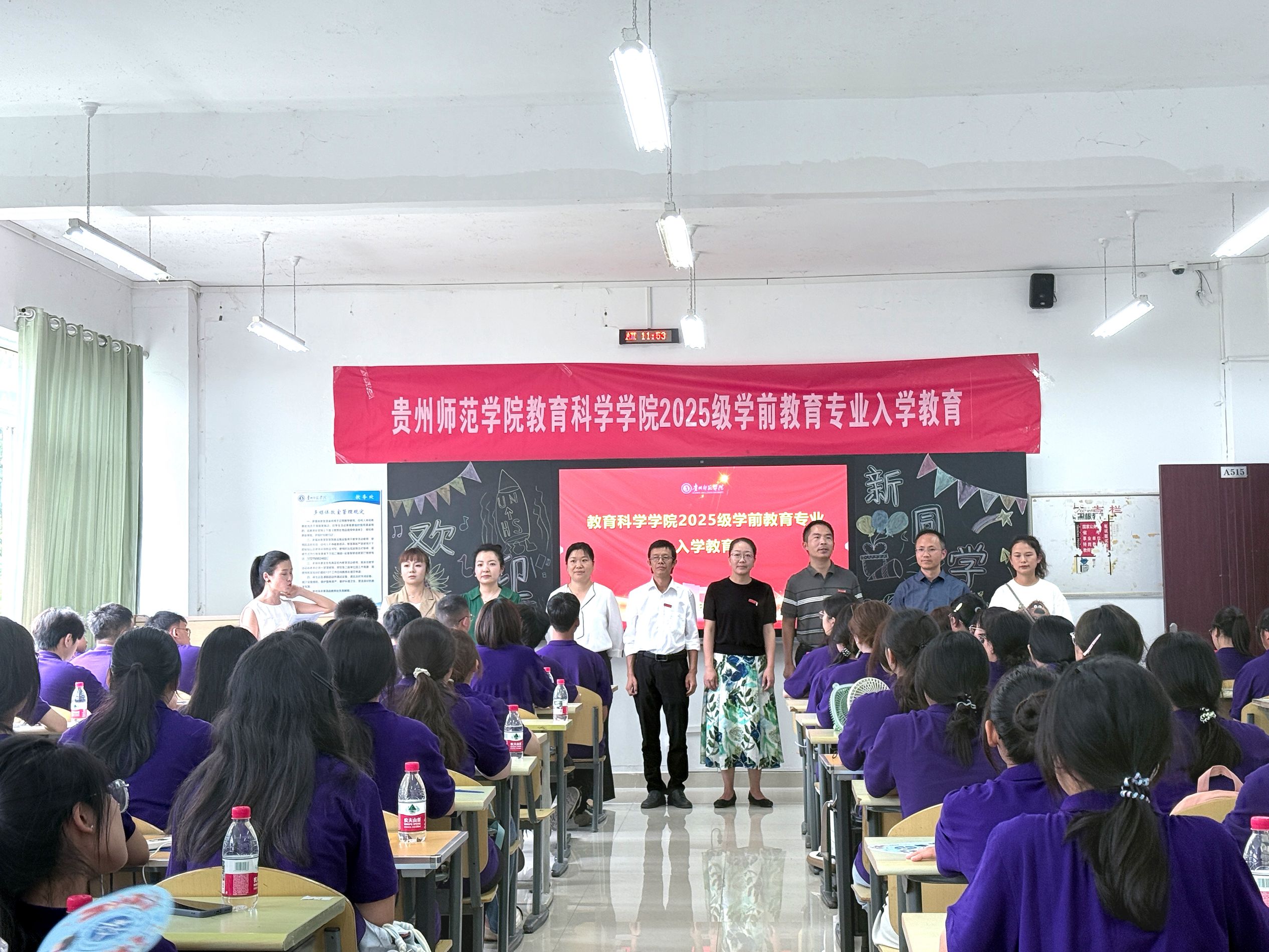 在逸夫楼514、515、516教室同步举行新生入学教育活动。活动围绕学院介绍、反诈宣传、学生组织招新、专业培养方案解读、考研宣讲等内容展开,旨在帮助新生快速适应大学环境、明确学习目标。学院2025级全体新生参加了此次活动。此次活动由2025级新生辅导员张思远主持。